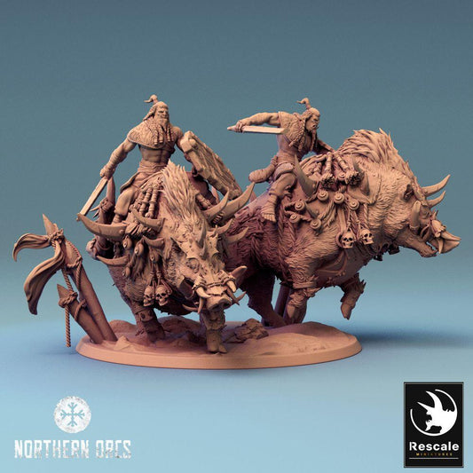 Miniatura de Tabletop: Dúo de Jinetes de Jabalí Orco - Bestias de Guerra en Jabalíes, Caballería Orco, Jinetes de Jabalí Orcos (24_04_O)