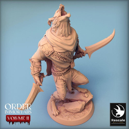 Figurina de Fantasía: Guerrero Hombre Lobo, Asesino de Doble Hoja, Jefe Enemigo, Hombre Lobo Inmortal (24_02_C3)